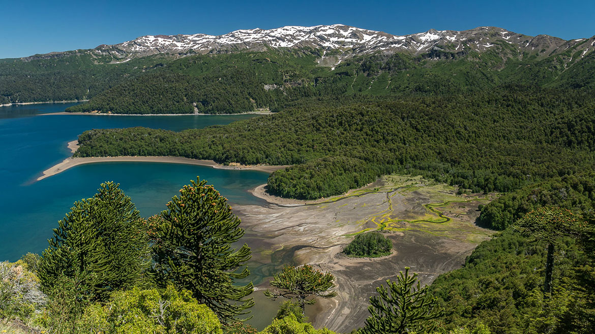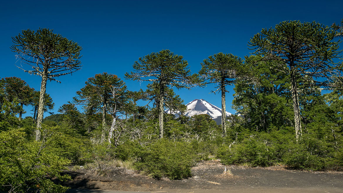 - Sicht auf den Vulkan Llaima mit Araukarien geniessen