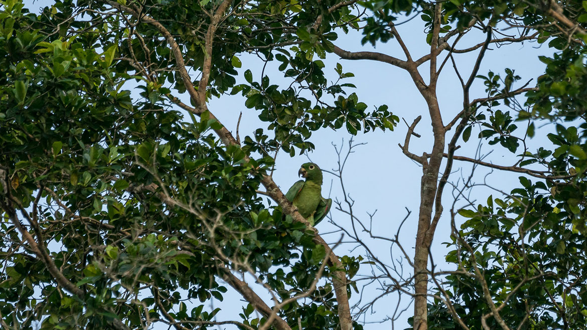 Heute starten wir um 6.30 Uhr zur Frühpirsch. Diesmal gehts auf einem weiteren kaum erkennbaren Trail in den Dschungel. In ihrem Kampf nach Sonnenlicht verwuchern allerlei Pflanzen den Pfad immer wieder aufs neue. Weswegen eine Machete hier unerlässlich ist. Anfänglich dem Fluss entlang mit mehreren Aussichtspunkten, dann tiefer in den Wald hinein, über Bäche und vorbei an weiteren kleinen Lehmlecken im Wald führt uns der Weg. Wir hören und riechen eine grosse Horde Pekaris. Welch bestialischer Gestank!