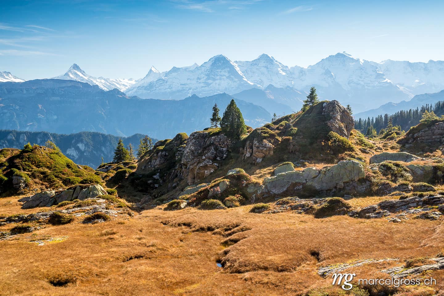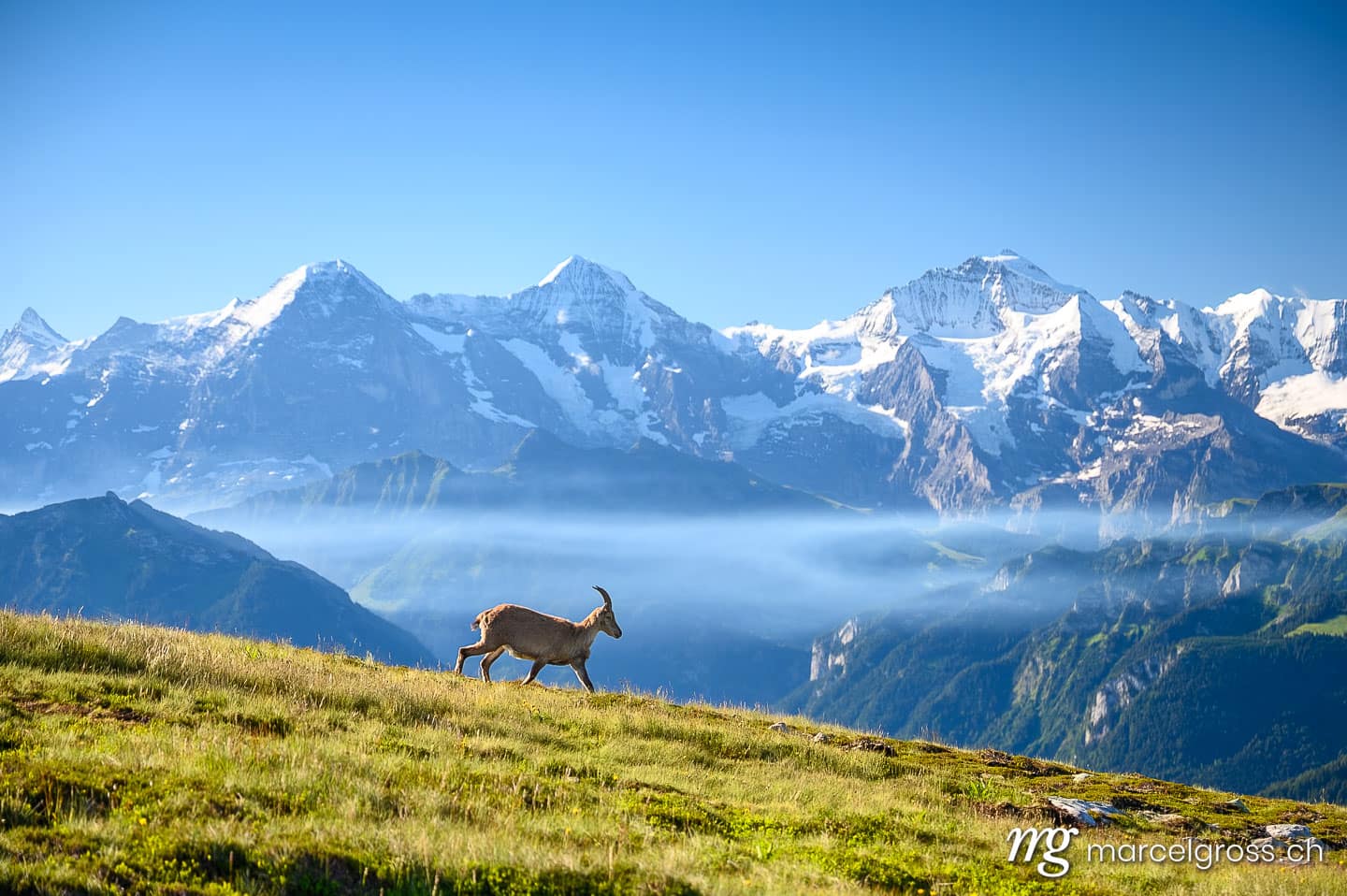 Mit etwas Glück begegnet man auch den Wildtieren dieser Region, wie dem majestätischen Alpensteinbock, den Rothirschen, Gämsen und Murmeltieren. Viel Vergnügen mit meinen besten Berner Oberland Bilder.
