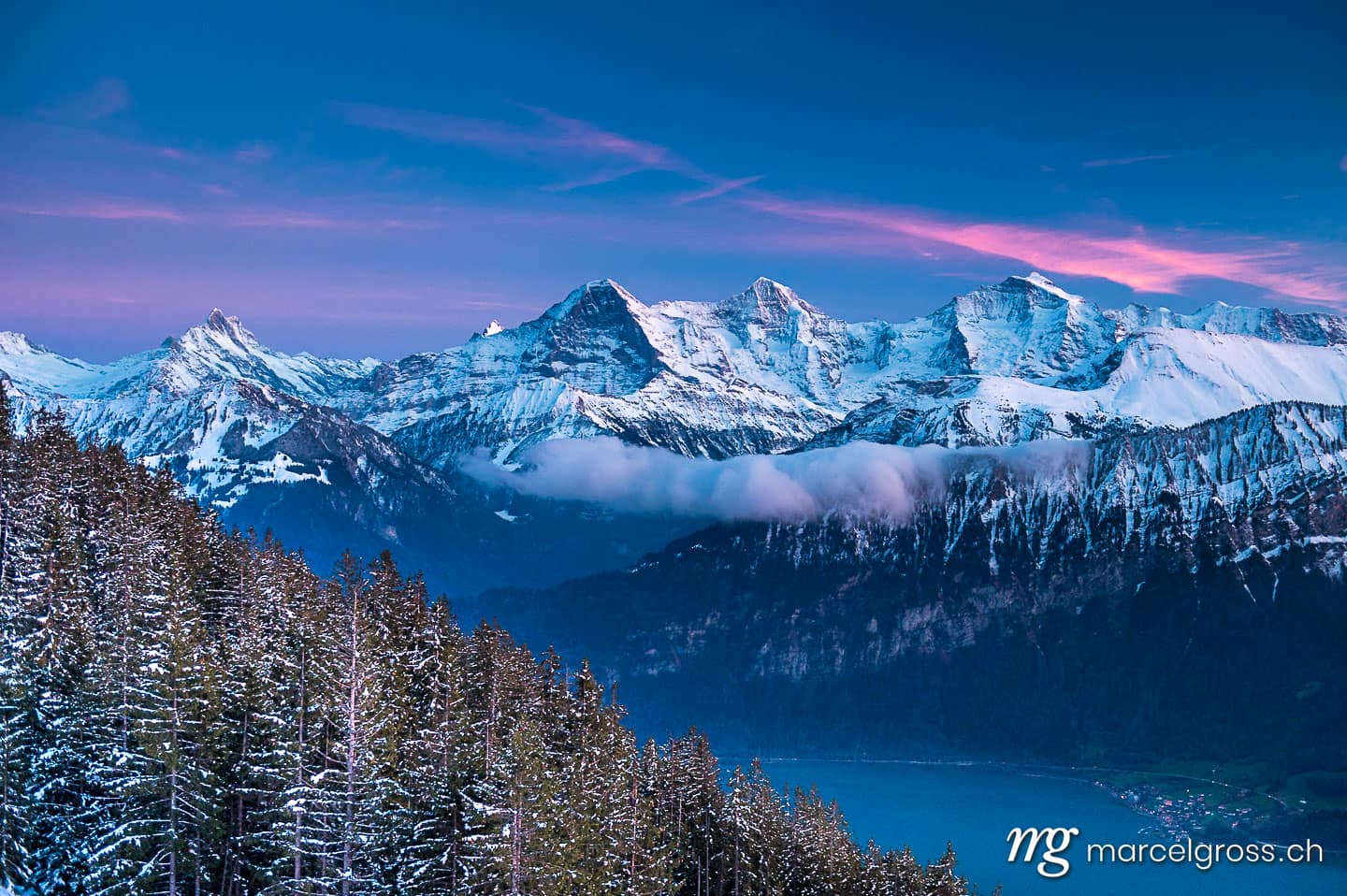 Weiter östlich – über die kleine Scheidegg – liegt das berühmte Bergdorf Grindelwald eingebettet in eine einzigartige Alpenlandschaft am Fusse der überwältigenden Eiger Nordwand. Das Dreigestirn Eiger, Mönch und Jungfrau sowie die anderen Viertausender der Berner Alpen – wie das Schreckhorn, Finsteraarhorn und Wetterhorn –bieten eine wunderbare Foto-Kulisse und dominieren die Szenerie. Sie bieten zu jeder Jahreszeit super Sujets für wunderbare Naturbilder und Landschaftsfotografie. Zu deren Fusse liegen der Thunersee und Brienzersee, sowie die Städte Thun, Interlaken und Spiez.
