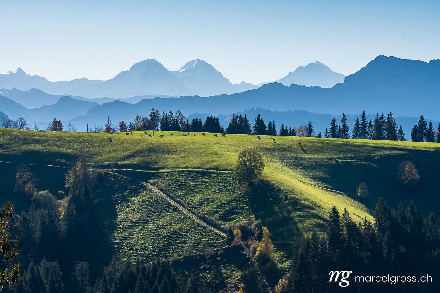Zahlreiche Aussichtspunkte mit Blick hin zu den Berner Alpen