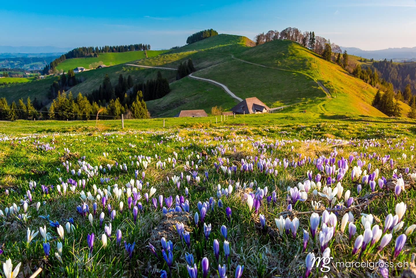 Die Schweiz im Frühling bietet eine Vielfalt an tollen Fotomotiven. Bilder von Apfelblüten im Baselbiet, Kirschblüten im Berner Rosengarten, Natur, Landschaften, Wiesen voller blühender Wildblumen und Blumen.