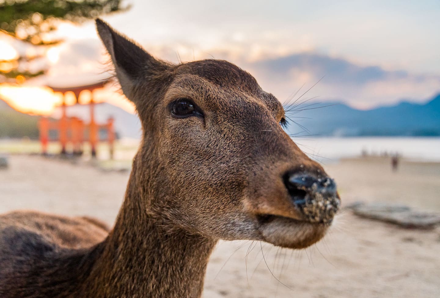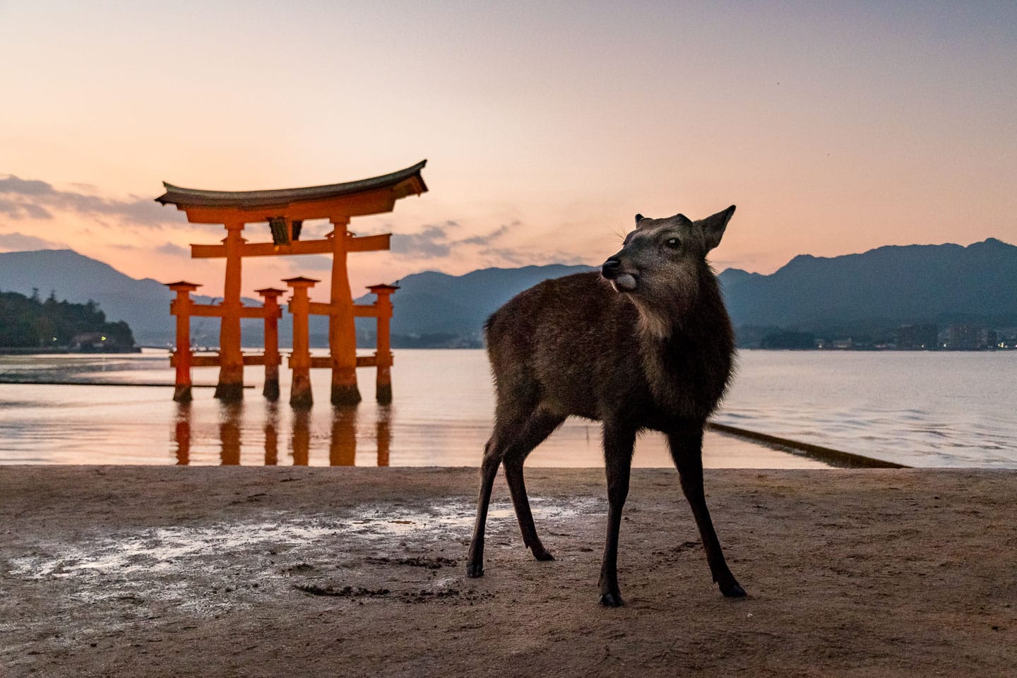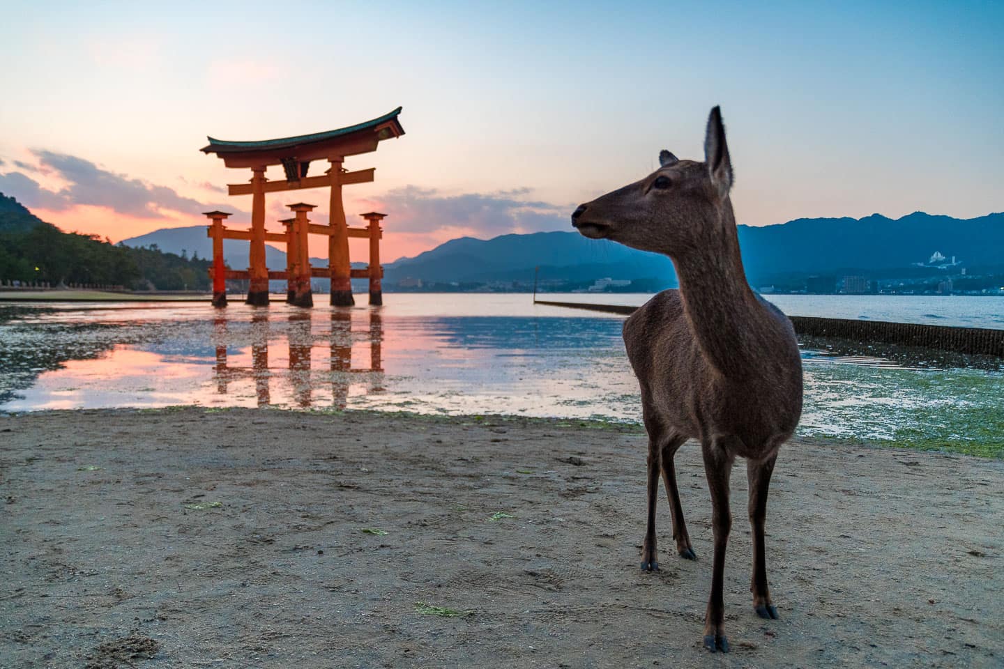 Mit der superschnellen Shinkansen-Magnetschwebebahn fahren wir nach Hiroshima. Die Stadt ist bis heute Mahnmal für die zerstörerische Kraft von Atomwaffen. Beim Abwurf der Atombombe Little Boy am 6. August 1945 um 8.16 Uhr verloren bis zu 90 000 Menschen augenblicklich ihr Leben. Diese Zahl sollte sich innerhalb des Jahres 1945 durch die Strahlenkrankheit auf 140 000 erhöhen. Im sehenswerten Hiroshima Peace Memorial Museum und dem Hiroshima Peace Memorial Park wird diesem tragischen Moment eindrücklich ein Denkmal gesetzt. Die Stadt ist auch Ausgangspunkt für einen Abstecher auf die Miyajima-Insel, wo der Itsukushima Schrein mit dem grossen, bei Flut im Meer stehenden, Torii steht. Eines der klassischen Fotomotive Japans. Mit dem Japan Railpass fahren wir weiter nach Himeji, um die dortige Burg Himeji zu besichtigen. Weiter gings via Koyasan, dem Hirschenparadies Nara nach Takayama. Bei einem Tagesausflug in die Japanischen Alpen nach Kamikochi begegnen wir einer Gruppe der rotgesichtigen Japan-Makaken, welche auch als Schneeaffen bekannt sind.