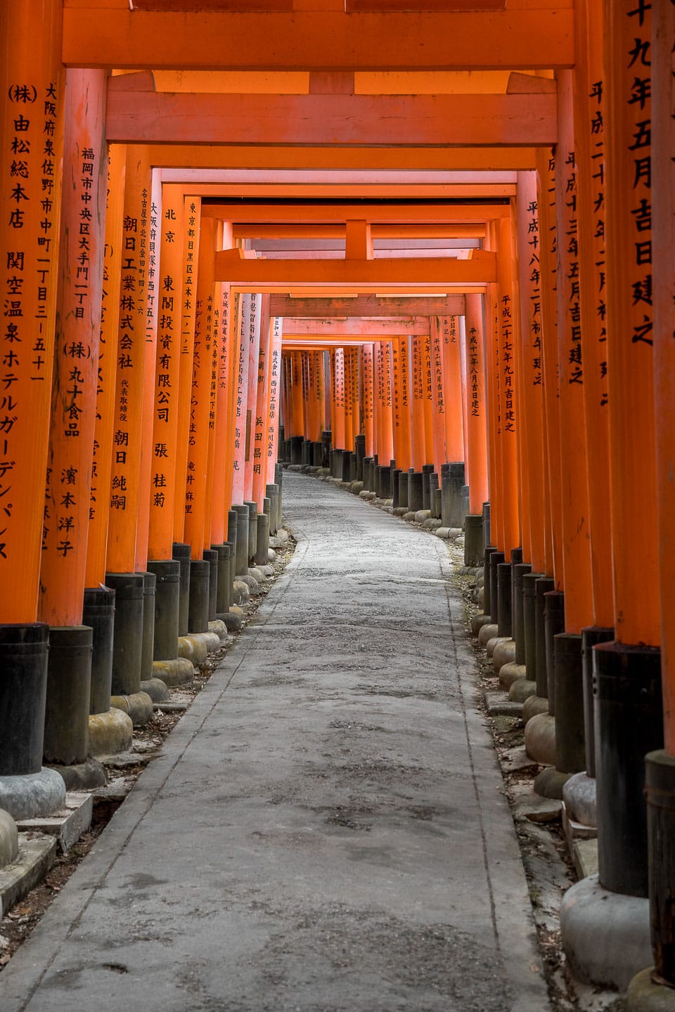 Ab hier beginnt nun die klassische Japan-Rundreise. Alles ist dicht bebaut und trotz enormen Menschenmassen hervorragend organisiert und strukturiert. Kyoto alleine bietet Sehenswürdigkeiten für weit über eine Woche mit seinen sagenhaften 17 Unesco-Weltkulturerbe-Stätten. Am bekanntesten hierbei sind sicherlich die Goldenen Pagode (Kinkakuji), den Silber Pavillon (Ginkakuji), sowie die tausenden orangen Toriis des Fushimi Inari Schrein. Weiter bietet Geisha-Viertel Gion. mit seinen engen Gassen und traditionellen Holzhäusern viele tolle Fotosujets. Auch die Bambushain in Arashiyama und der Garten des Otagi Nenbutsuji Tempels mit seinen witzigen 1200 Rakan Statuen sollten nicht verpasst werden.