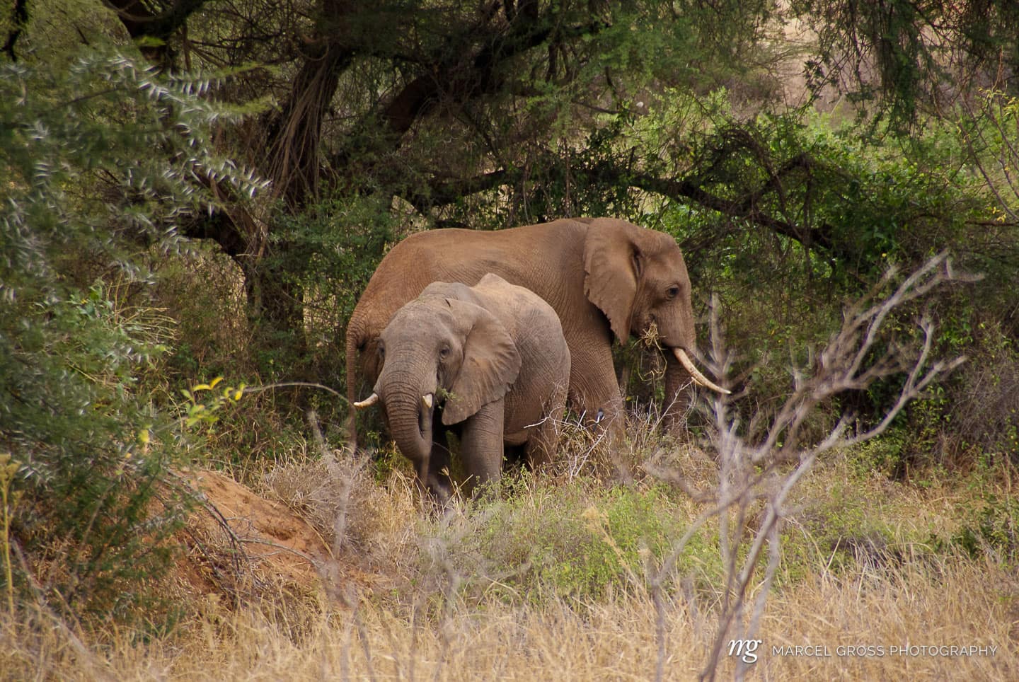 Nur wenige Stunden von der Küste entfernt beginnt die Wildnis der riesigen Tsavo Nationalparks. Die beiden Schutzgebiete Tsavo East und Tsavo West gehören zusammen zu den grössten Nationalparks Afrikas und erstrecken sich über mehr als 21’000 km².