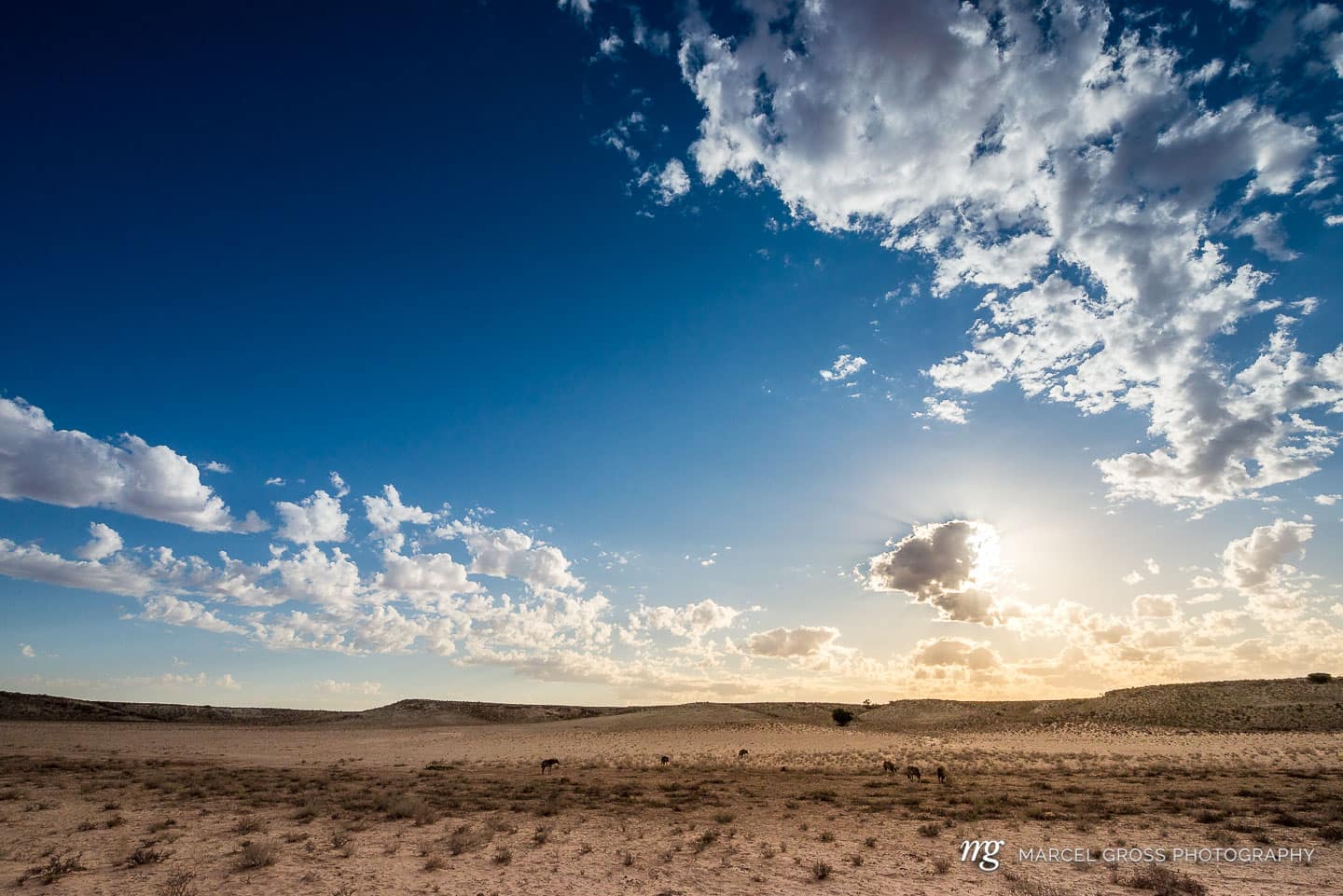 Im Dreiländereck zwischen Botswana und Namibia liegt die urtümliche Wildnis des Kgalagadi Transfrontier Parks. Das grenzüberschreitendes Naturschutzgebiet in der Kalahariwüste ist bekannt für seine Löwen, Geparden, Leoparden, Giraffen, Oryxantilopen (Gemsbok), Springböcke, Gnus und viele weitere Wüstenbewohner. Die Trockenflüsse des Auob und Nossob bieten ein Wildnis-Abenteuer, wie es nur noch an wenigen Orten auf unserem Planeten möglich ist.