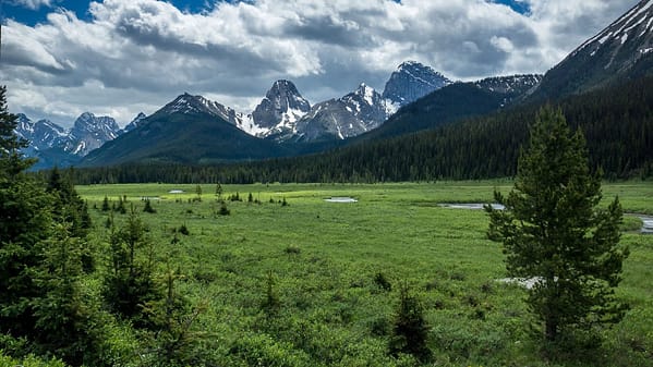 Staubwolken auf der ungeteerten Smith-Dorrien/Spray-Trail-Road