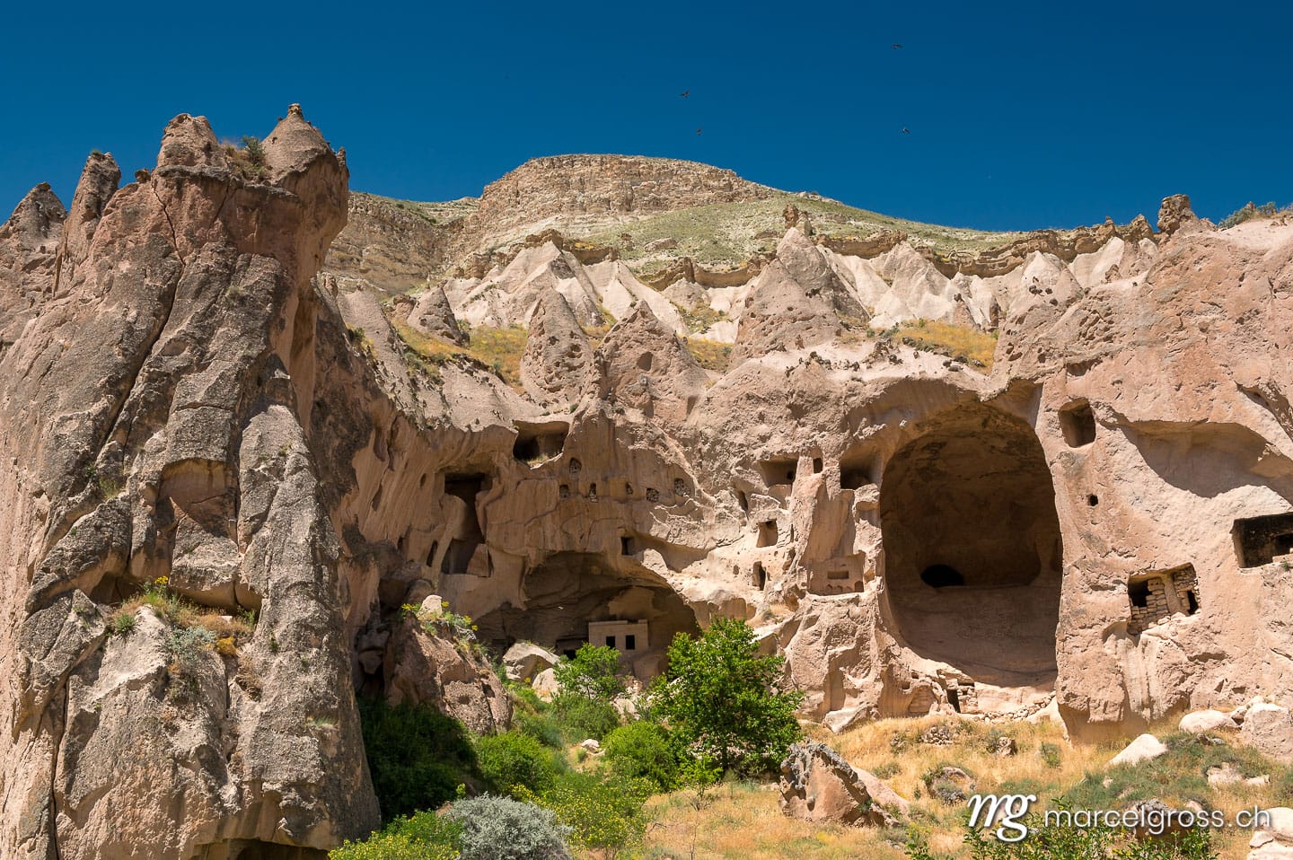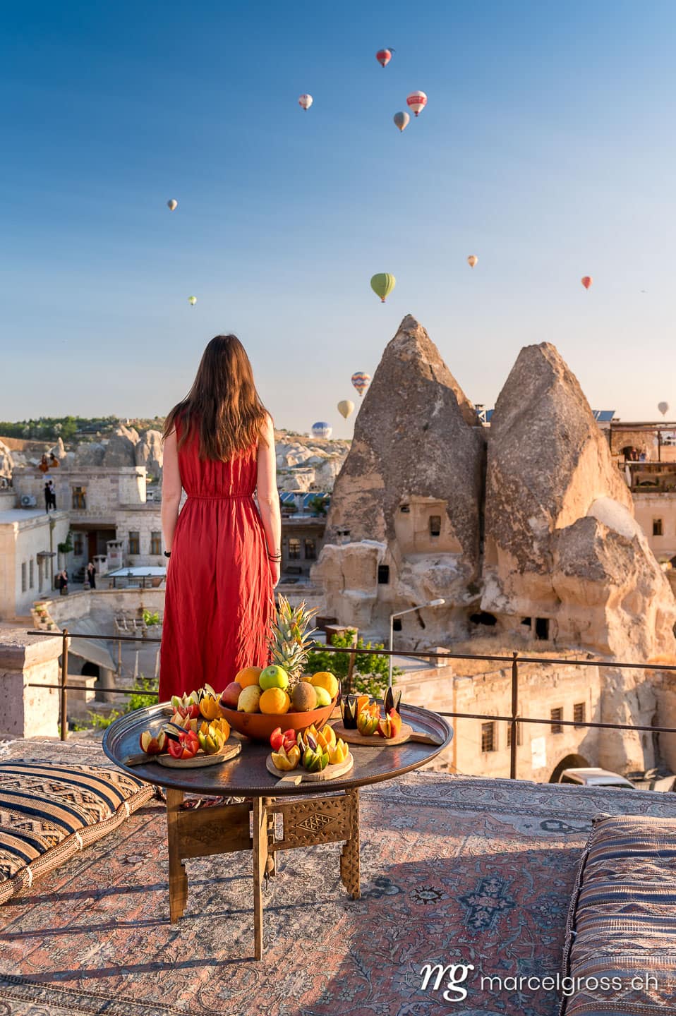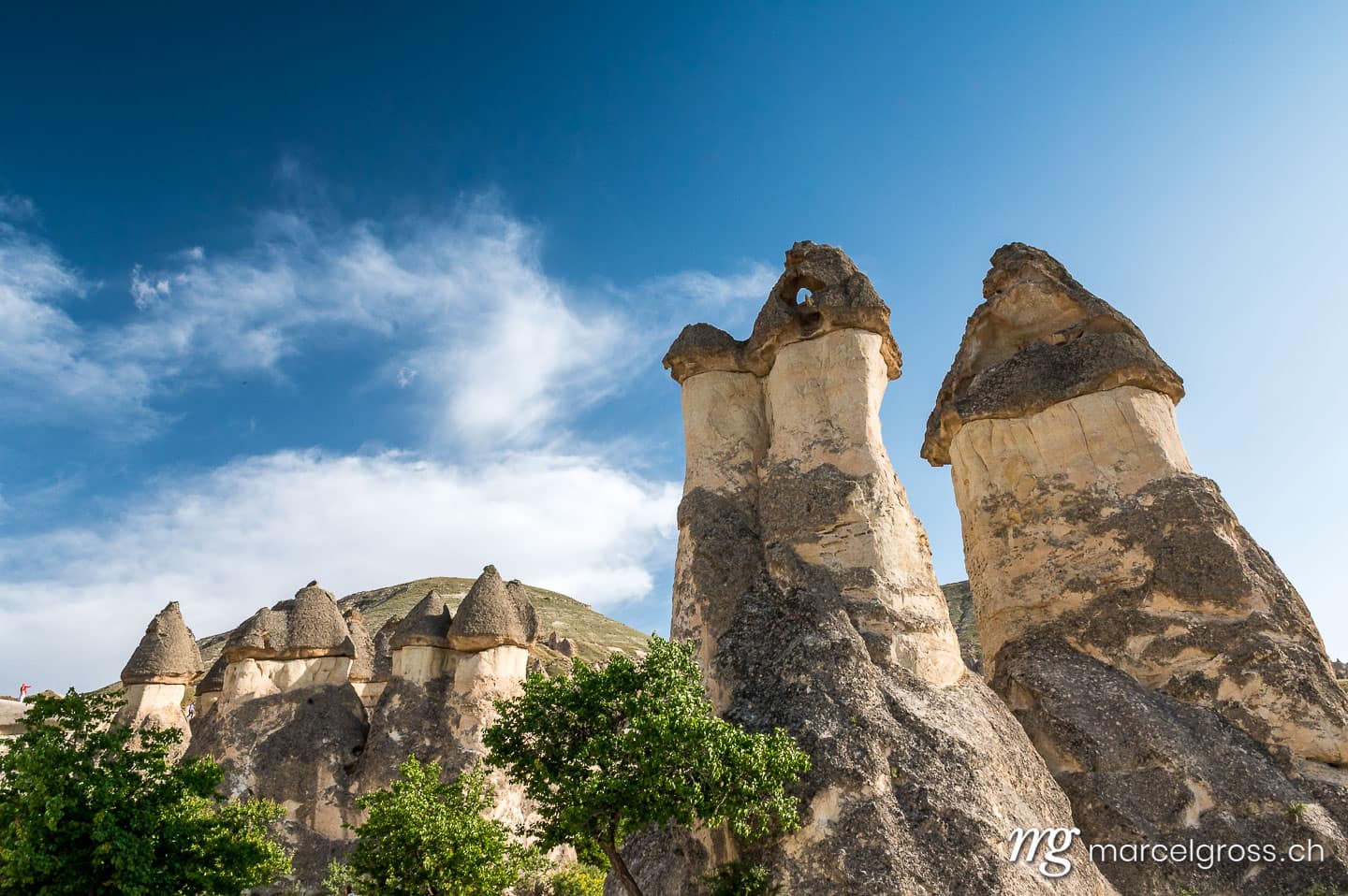 Wer hat die beinahe märchenhaften Bilder der hunderten von Heissluftballonen über der halbwüsten Landschaft von Kappadokien nicht auch schon bestaunt. Diese Bilder sind eines der wahren Foto-Highlights einer jeden Türkei-Reise. Genau deshalb wollten wir die Gegend rund um Göreme einmal mit unseren Augen sehen und wenn möglich auch an einen Ballonflug teilnehmen. Kappadokien ist bekannt für seine einzigartigen Tuffstein-Formationen und die einzigartigen «Feenkamine», die die Täler zu wahren Märchenlandschaften machen. Etwas weniger bekannt, aber nicht minder sehenswert sind die unterirdischen Städte Derinkuyu und Kaymaklı. Weitere Sehenwürdigkeiten bilden die Felsenburg von Ortahisar, Nevşehir, Pigeon Valley, Love Valley, Devrent (Imaginary Valley), Ortahisar Castle, das fruchtbare Ihlara Valley sowie die Kleinstadt Avanos.