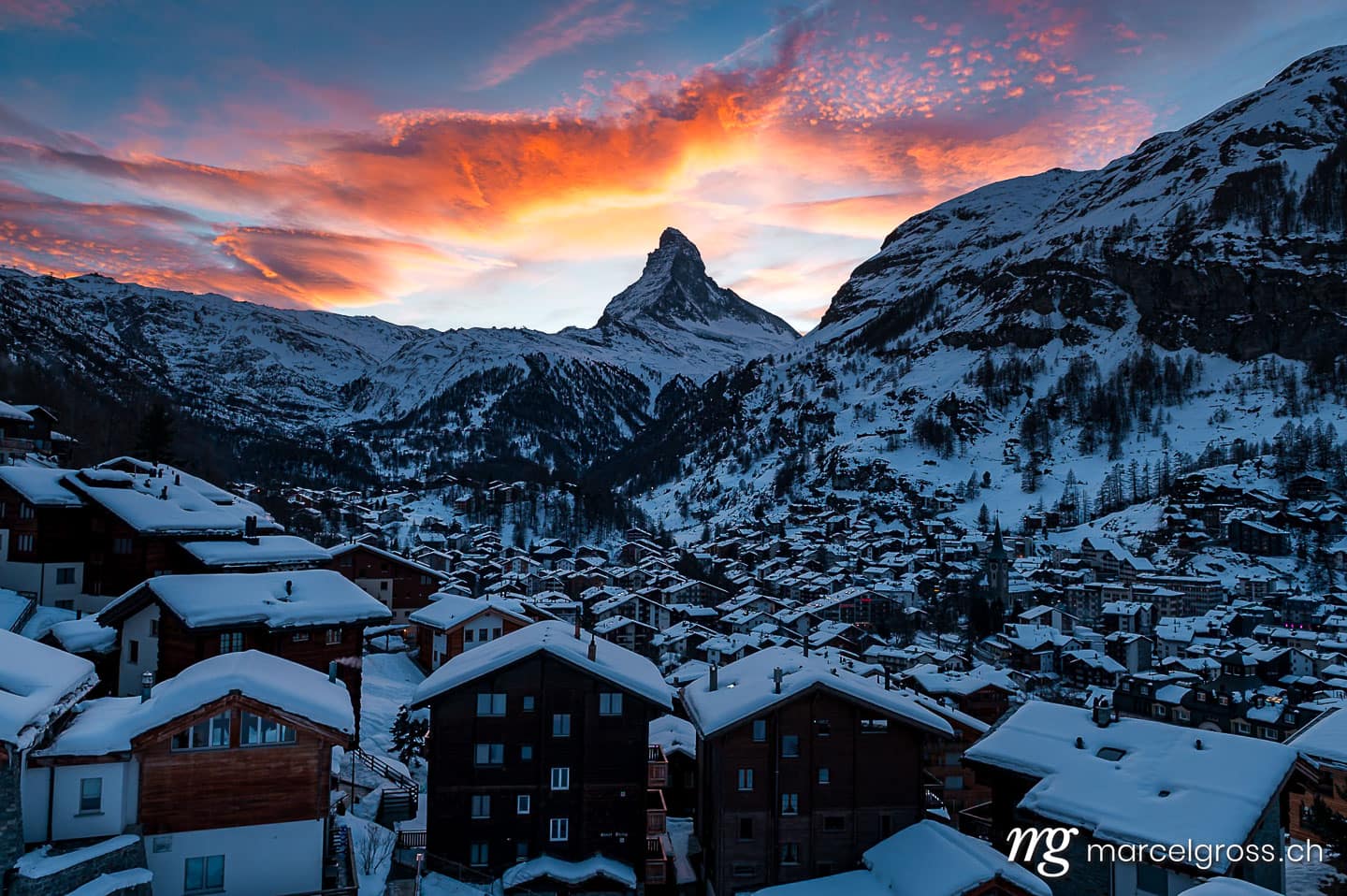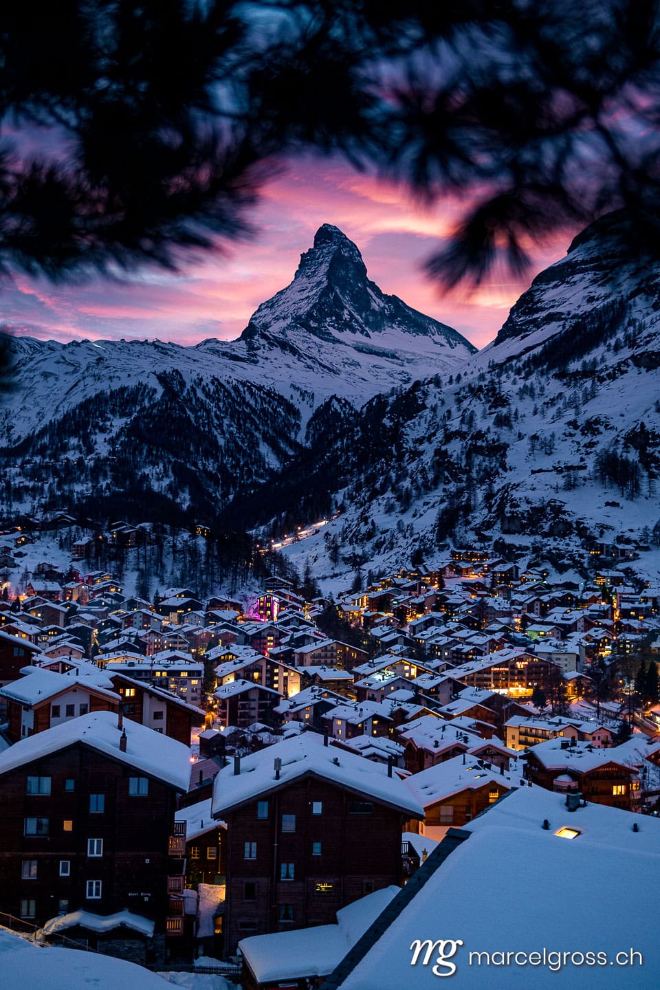 Das international bekannteste Walllis-Foto dürfte das touristisch Bergdorf Zermatt im Mattertal mit seinem Hausberg – dem weltberühmten Matterhorn – sein. Einen der atemberaubenden Sonnenaufgang und rosten Sonnenuntergänge an einem Bergsee wie dem Stellisee oder Riffelsee mit dem sich spiegelnden Matterhorn zu fotografieren gehört auf die Wunschliste unzähliger Natur- und Landschaftsfotografen weltweit und wohl das typischste Postkartensujet aller Wallis Bilder.